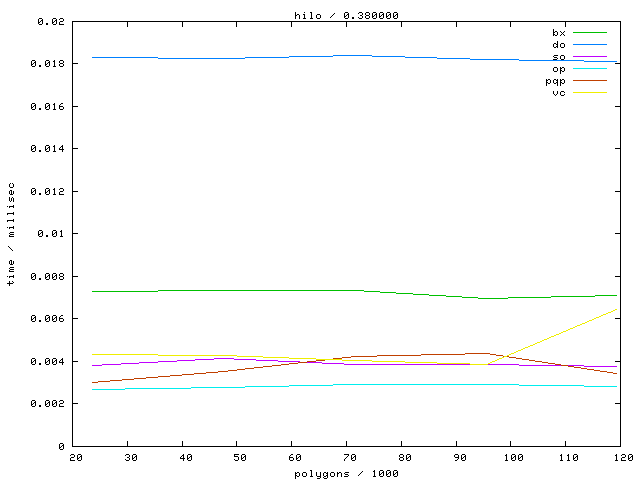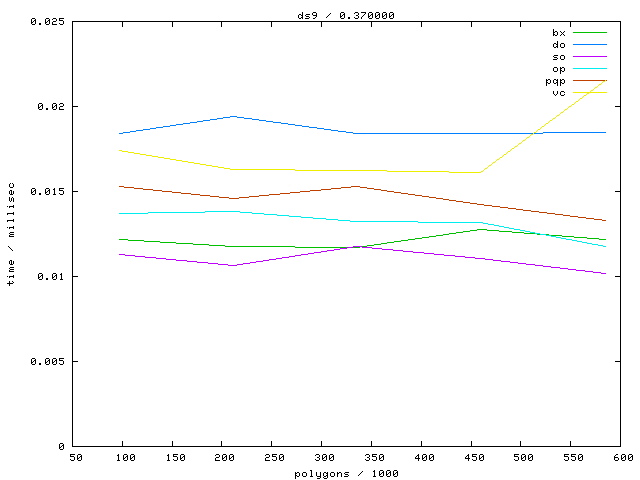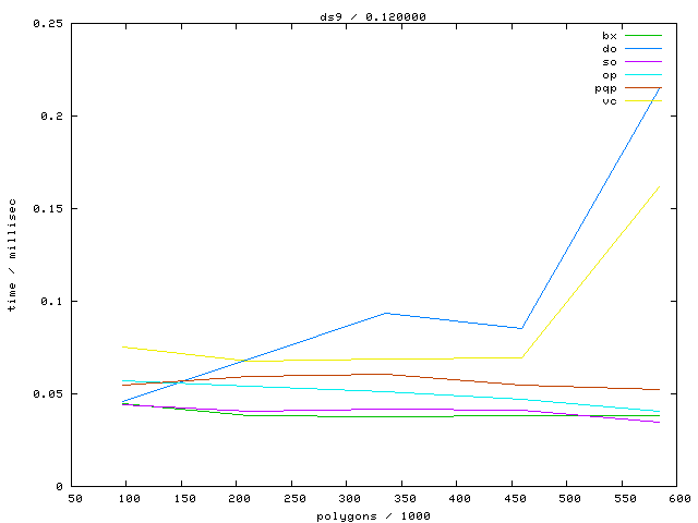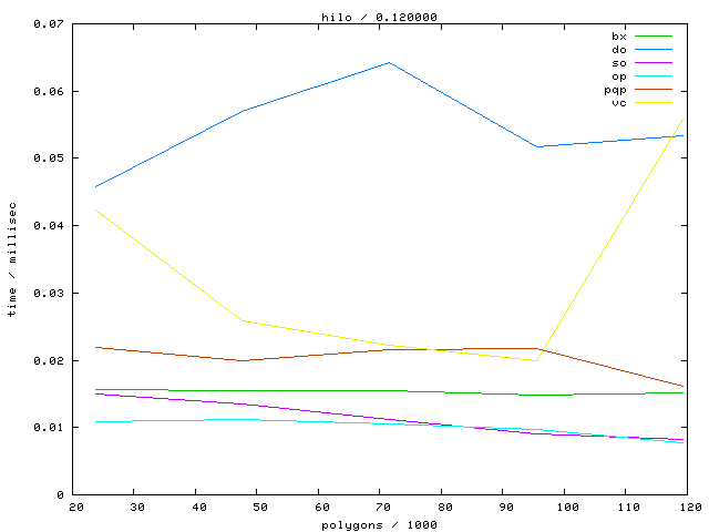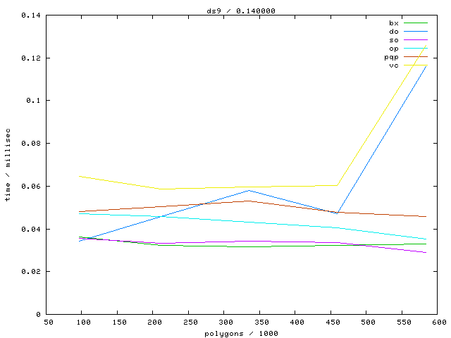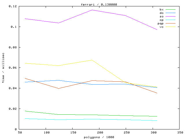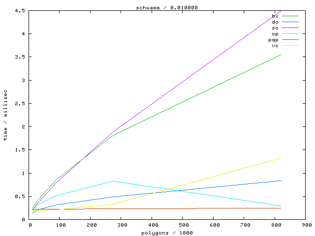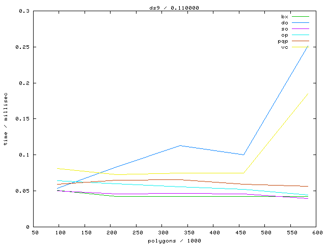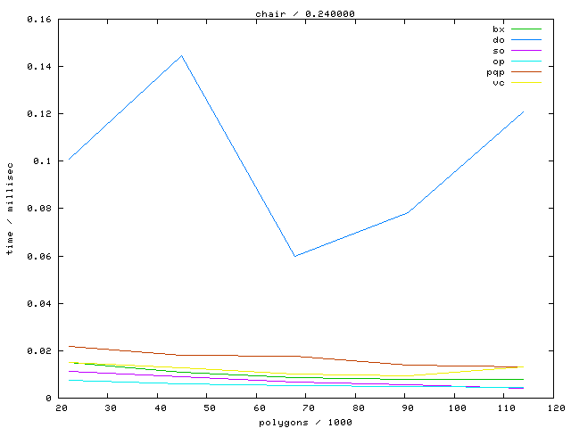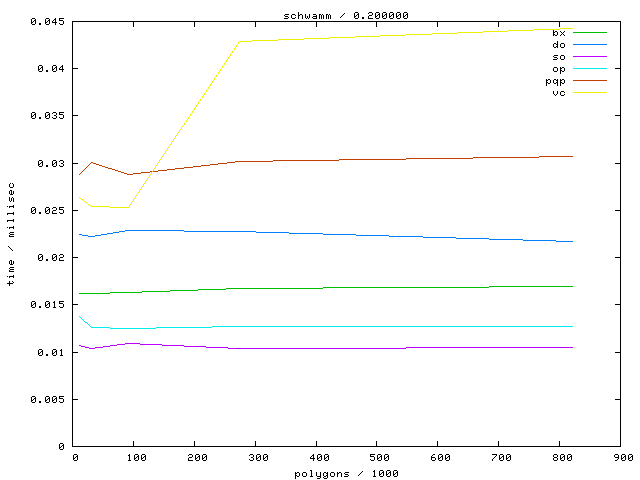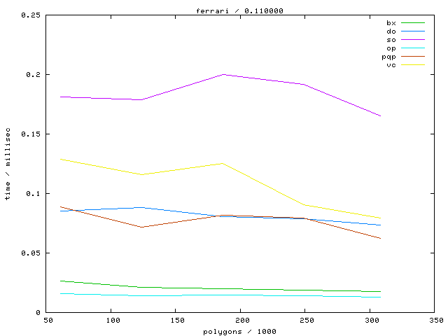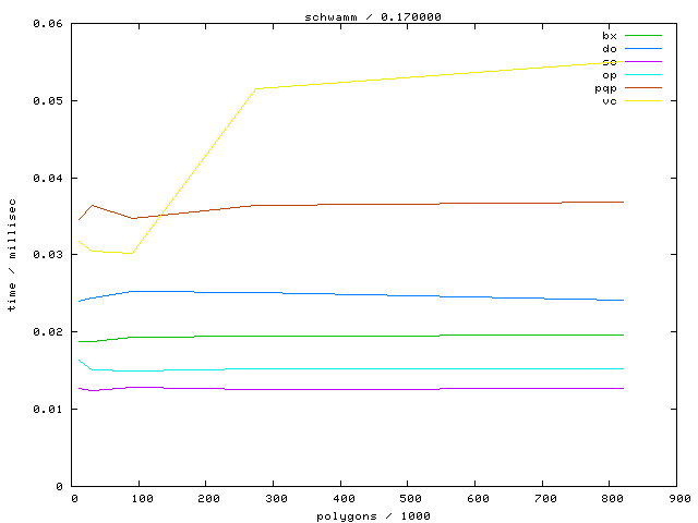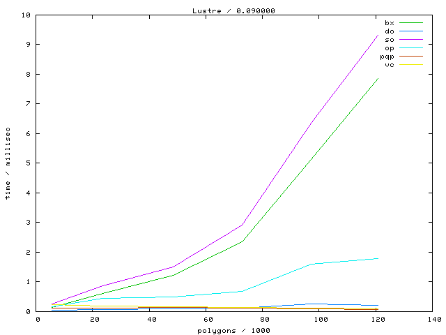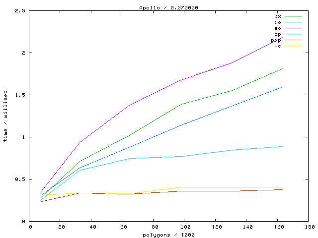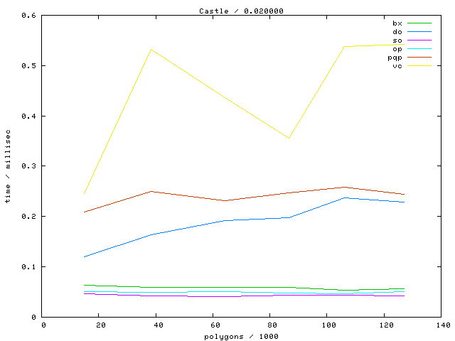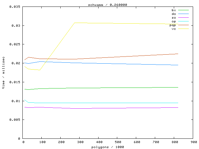 The second table contains diagrams showing the running time against object complexity.