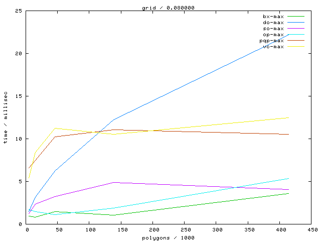 Links marked with "avg" refer to plots with the average running time, links marked with "max" to maximum running time plots.