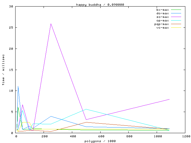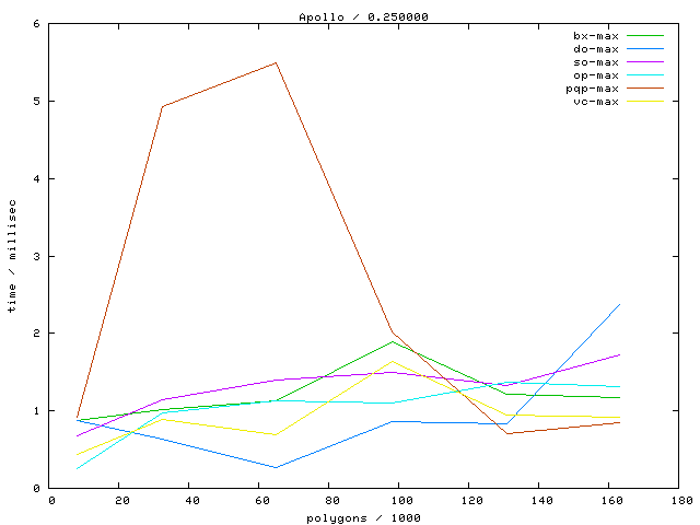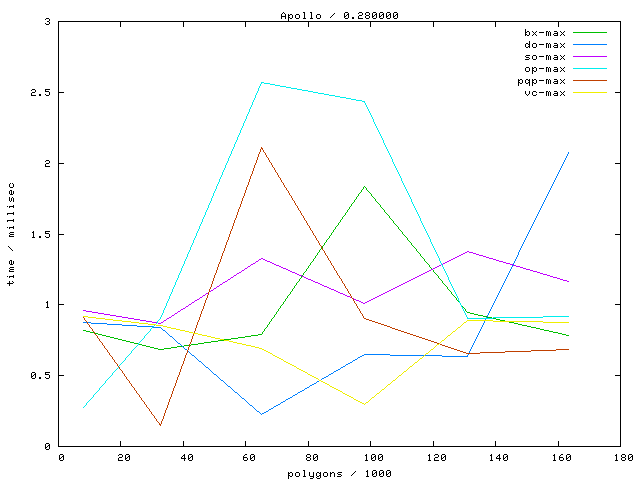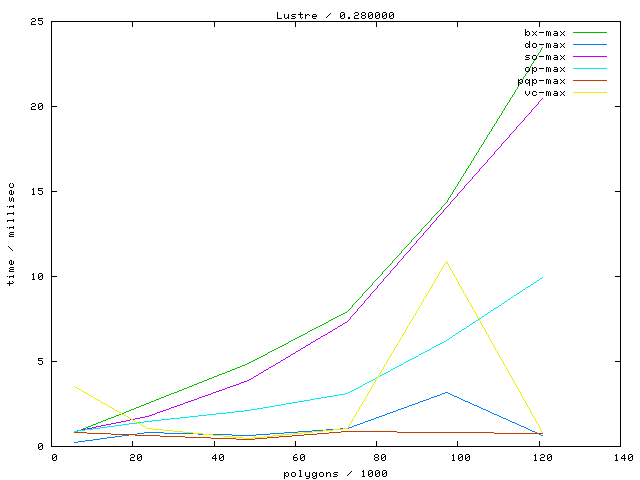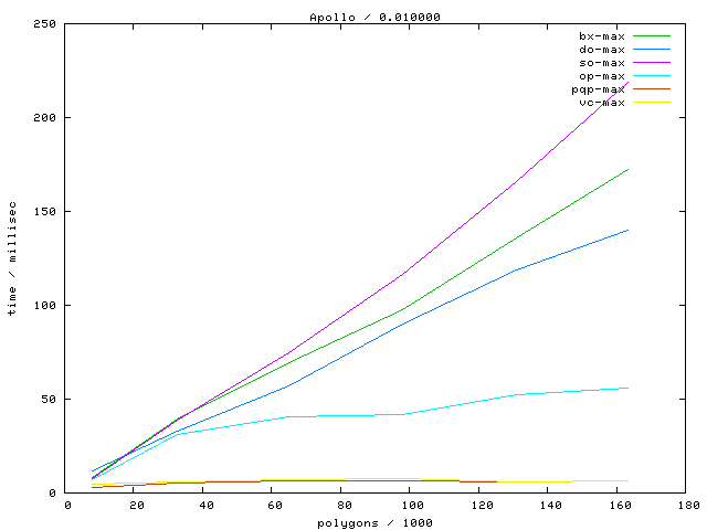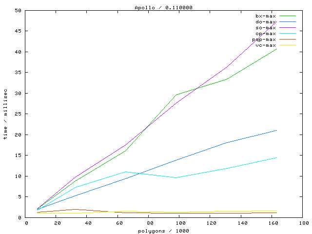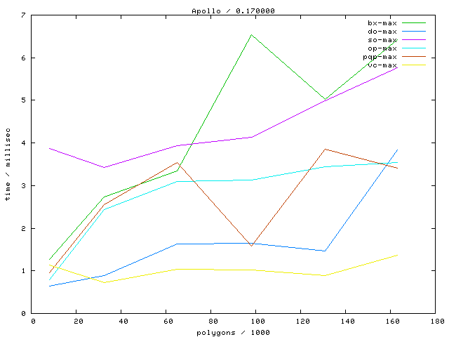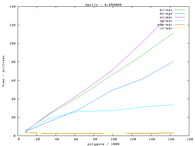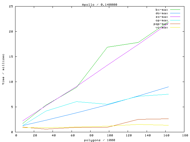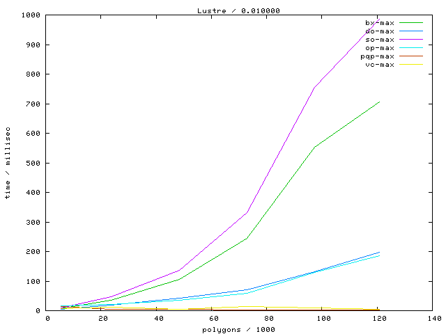 Links marked with "avg" refer to plots with the average running time, links marked with "max" to maximum running time plots.