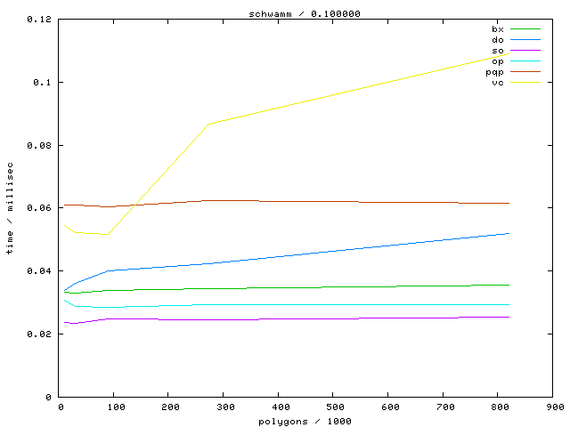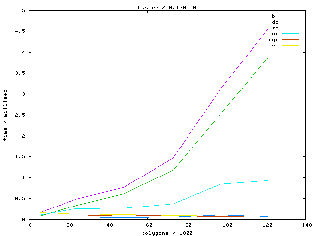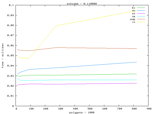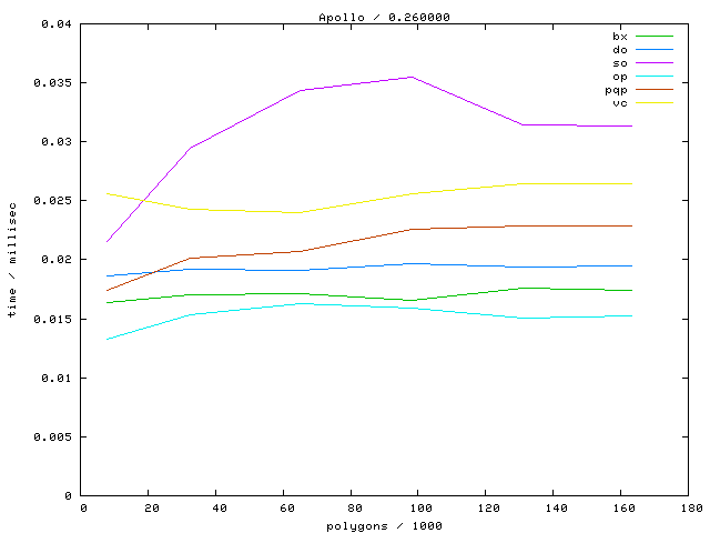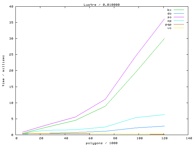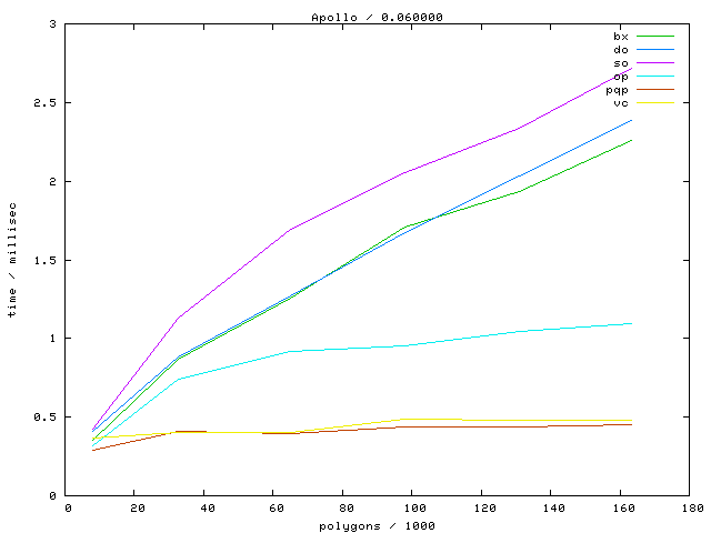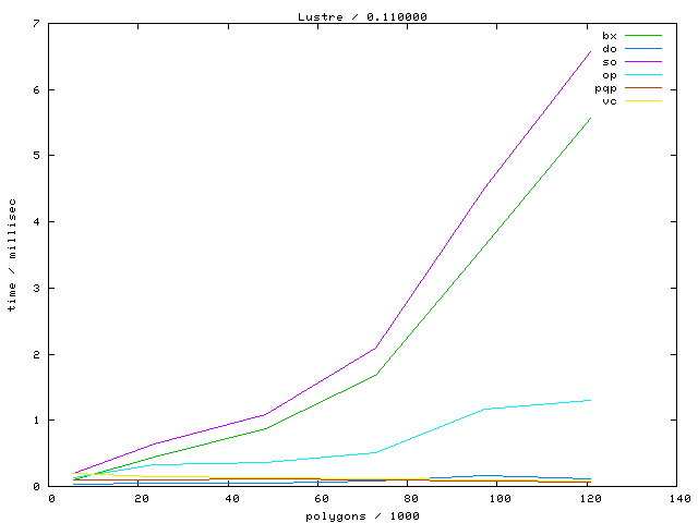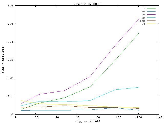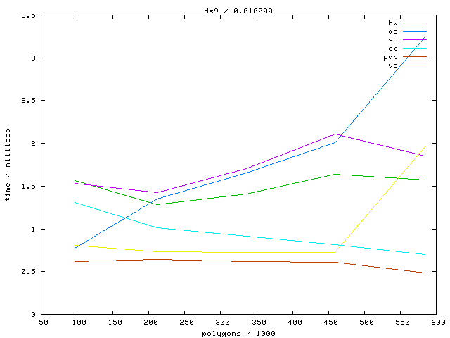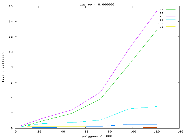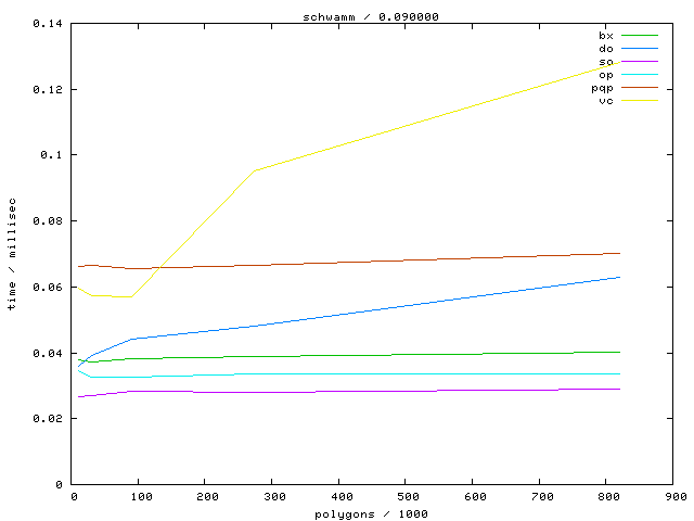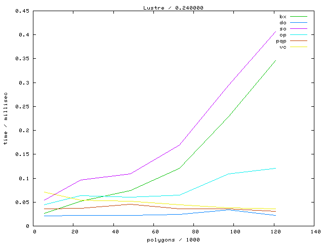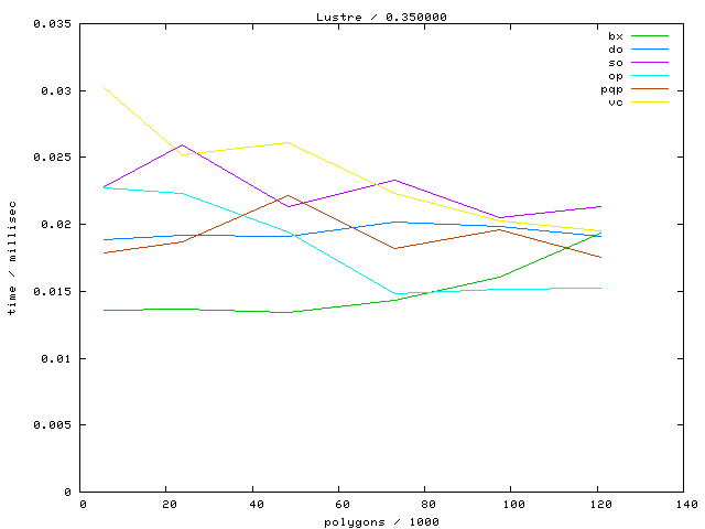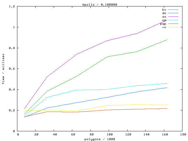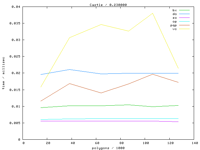 The second table contains diagrams showing the running time against object complexity.