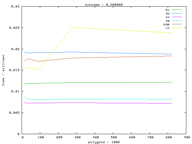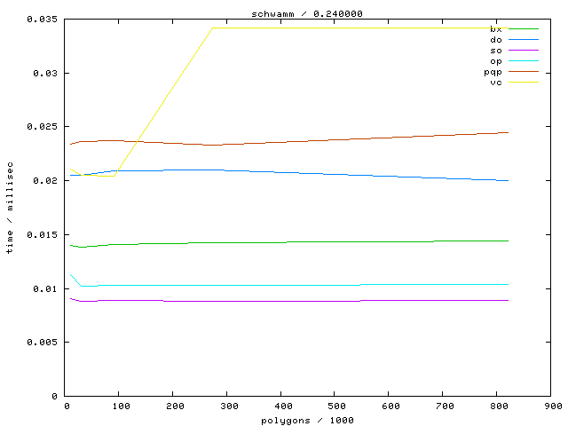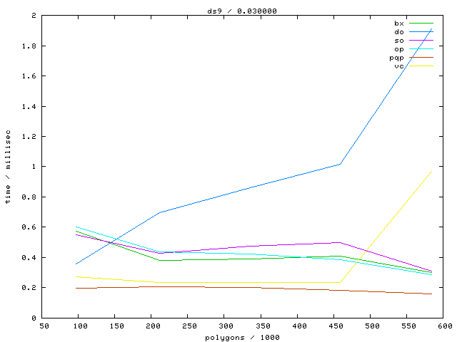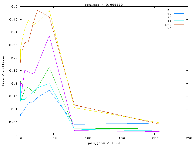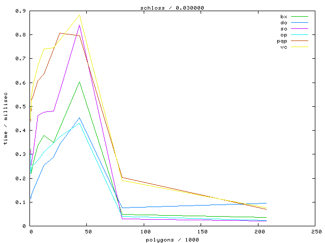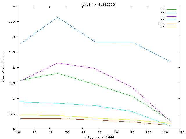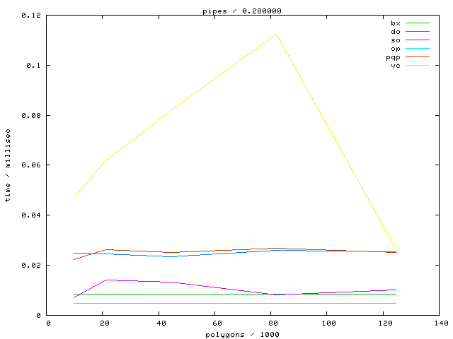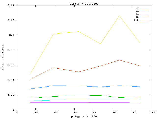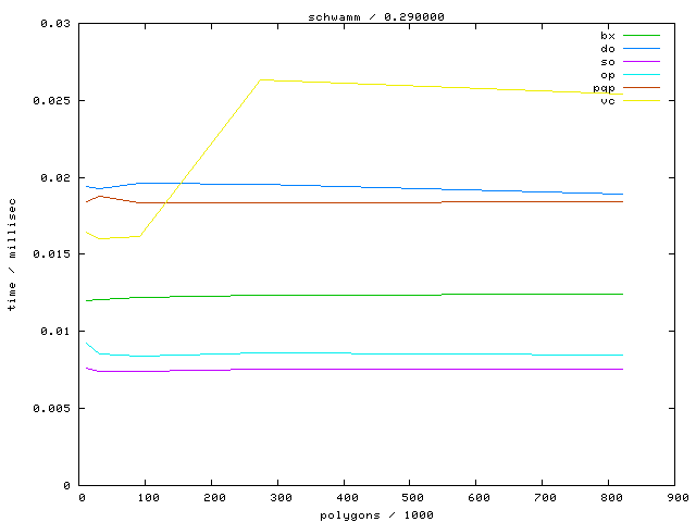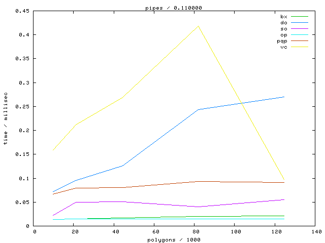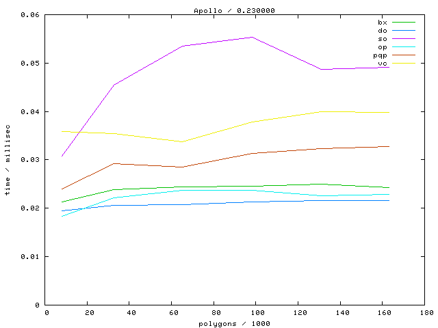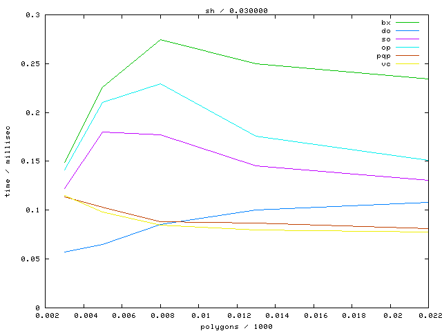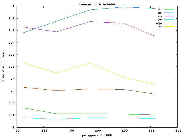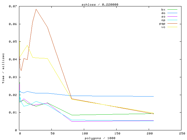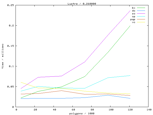 The second table contains diagrams showing the running time against object complexity.