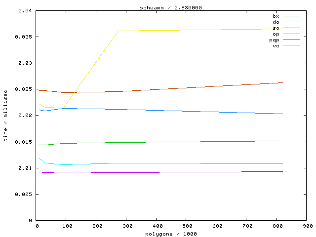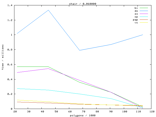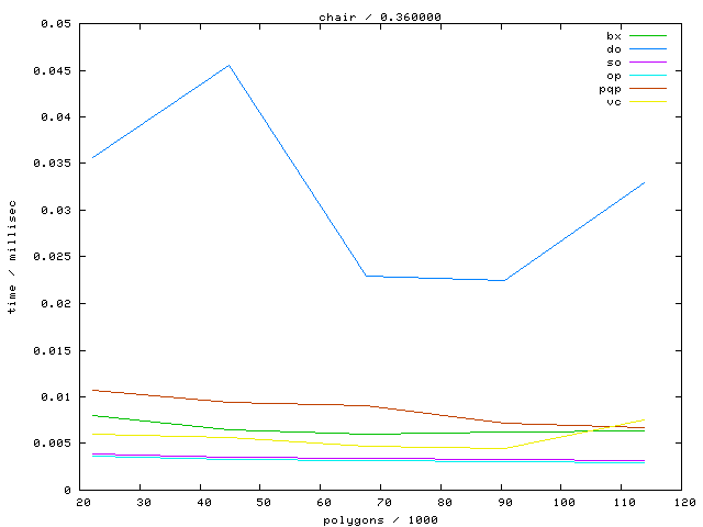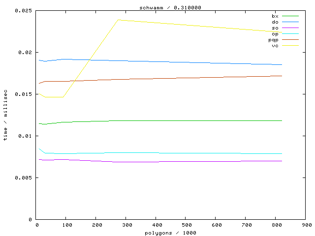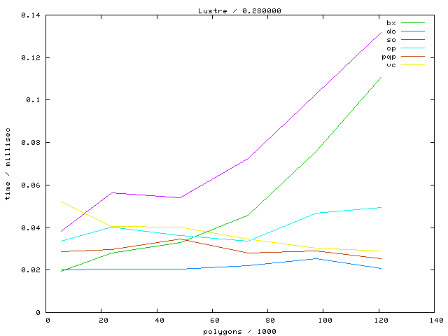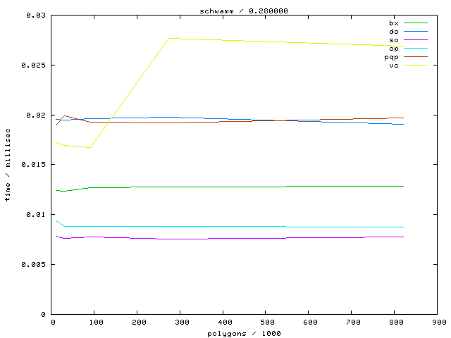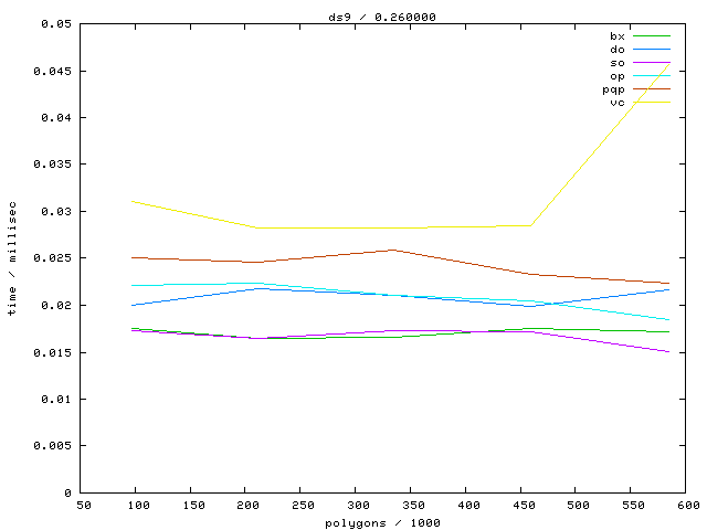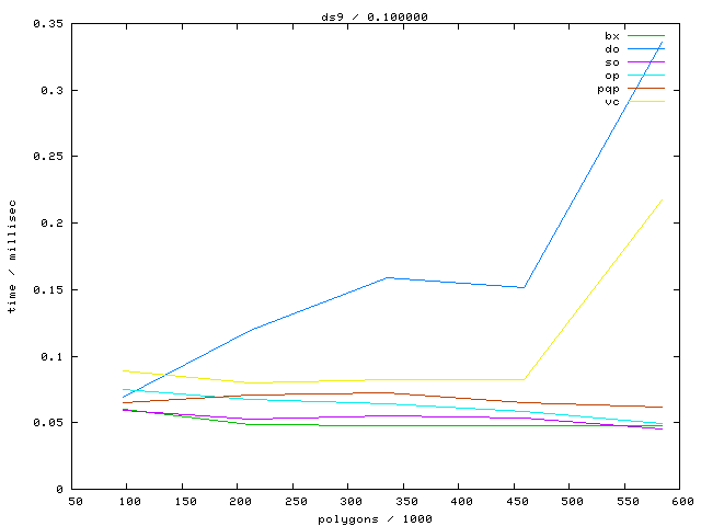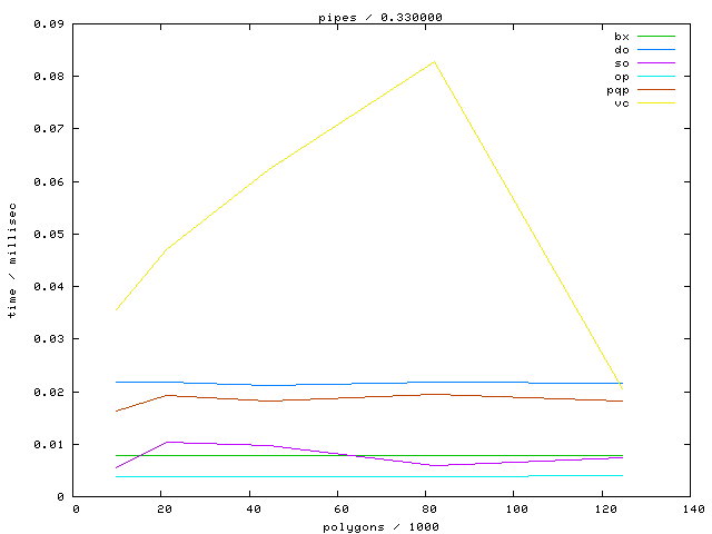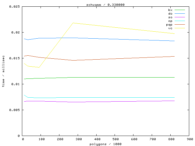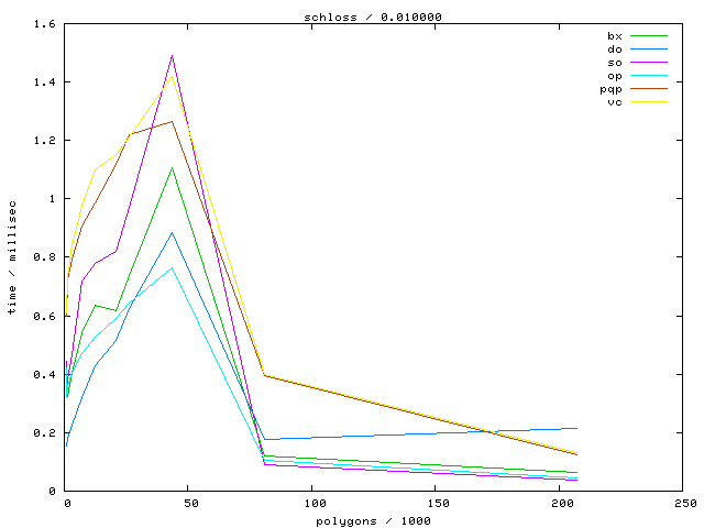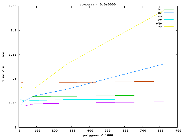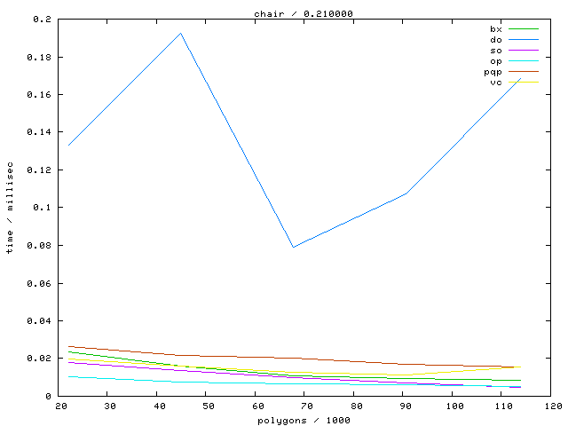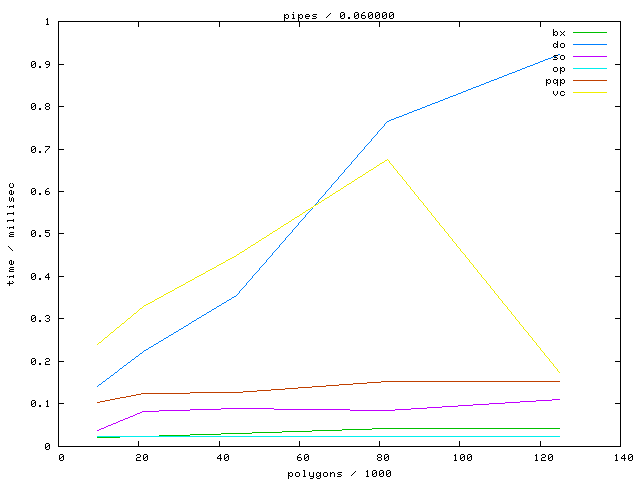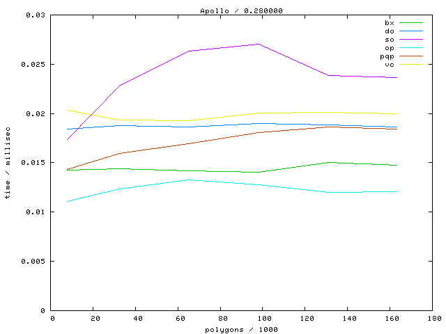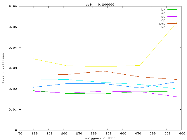 The second table contains diagrams showing the running time against object complexity.