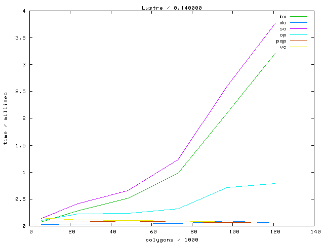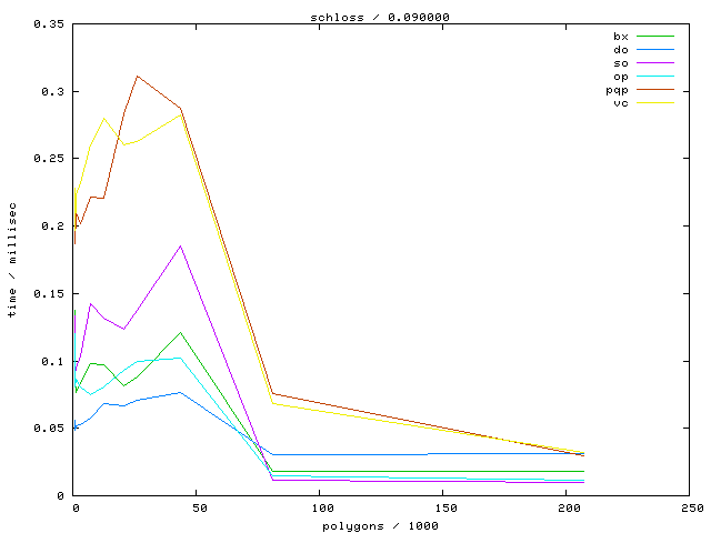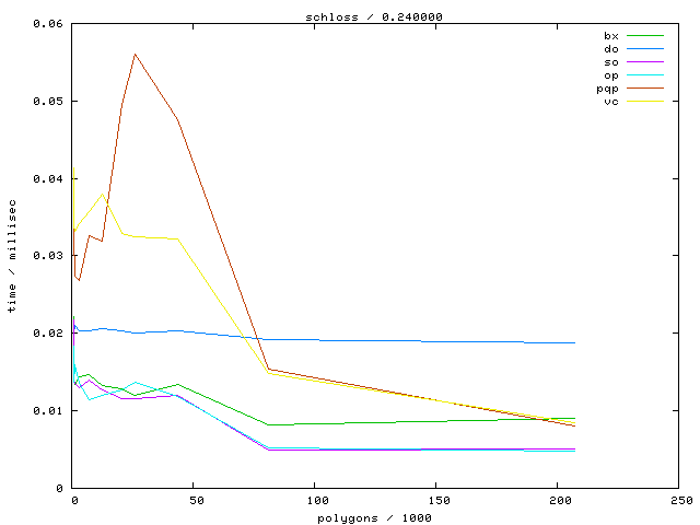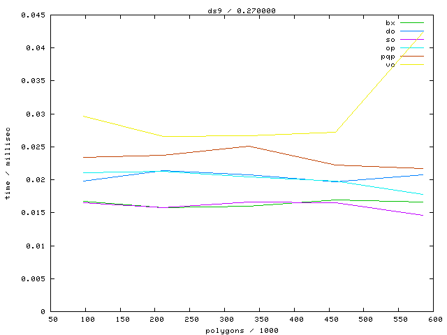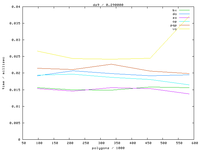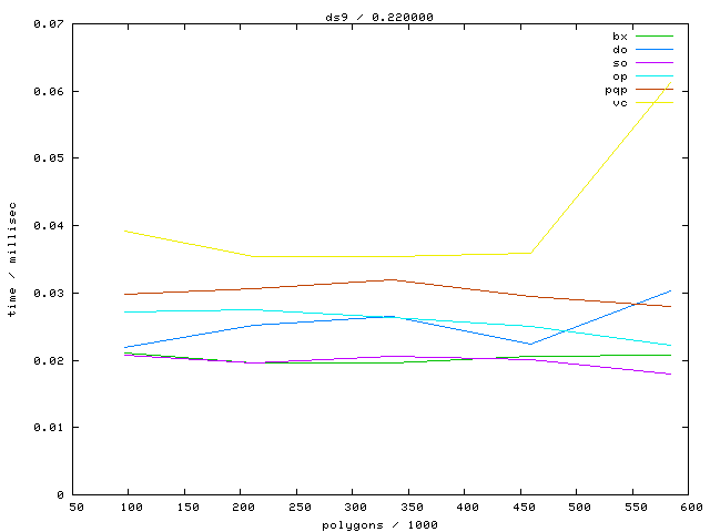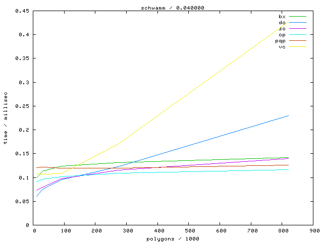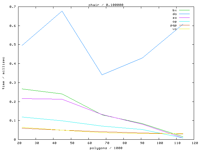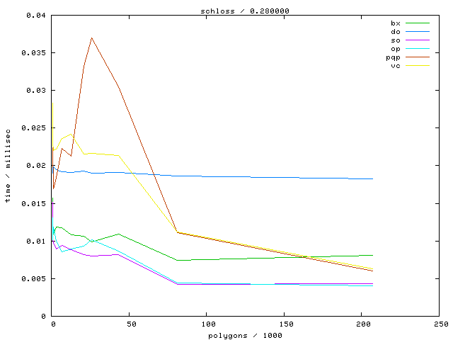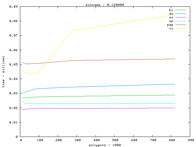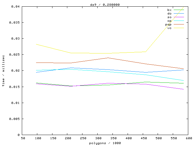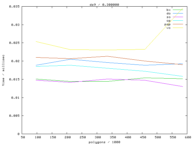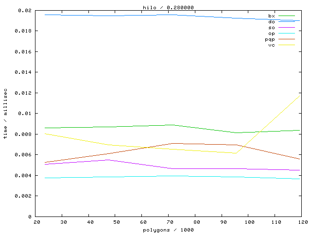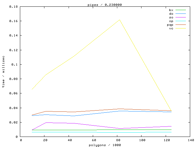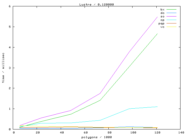 The second table contains diagrams showing the running time against object complexity.