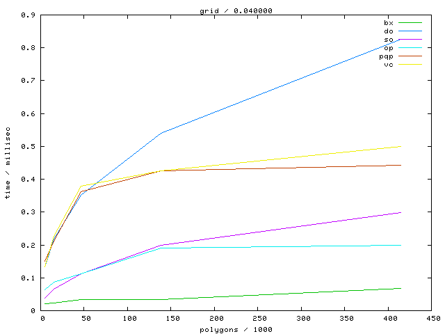 The numbers in the links mark the number of polygons and the distance, respectively.